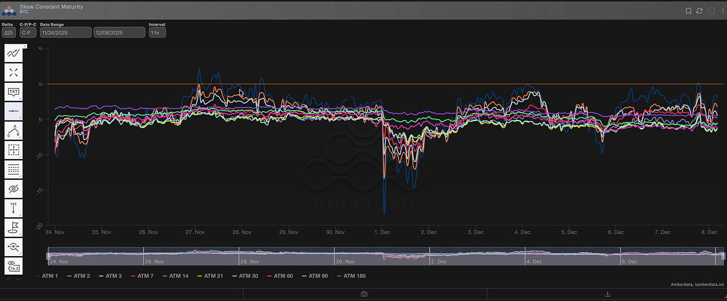 Given the current volatility levels, term structure and the currently priced put skew. There’s a bit of curvature juice worth squeeze there.