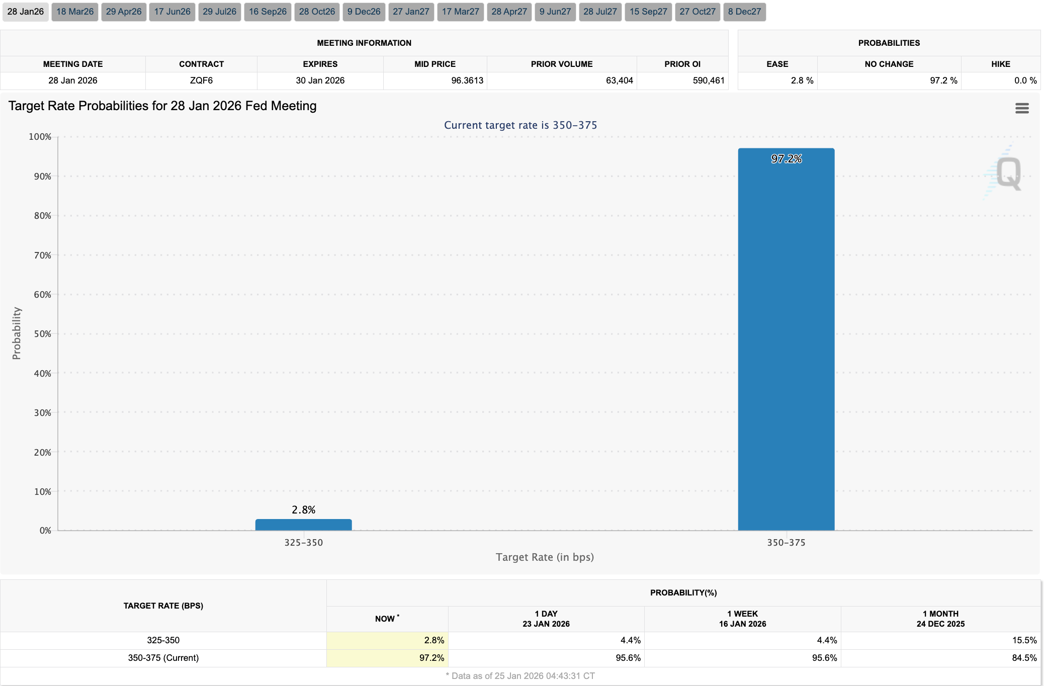 The Fed has an FOMC rate decision this week. A month ago the market expected the Fed to cut 25bps with 15% probability, today that’s only 2.8% probability.