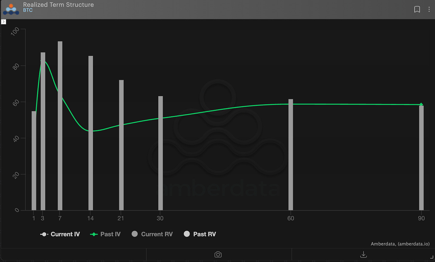 14-dte was the most extreme VRP, with RV exceeding IV by nearly +40 volatility points.