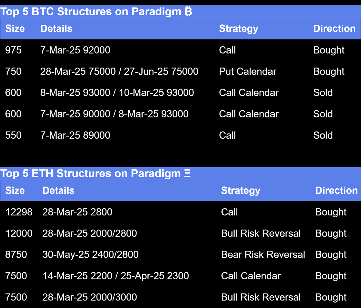 Paradigm Top Trades This Week