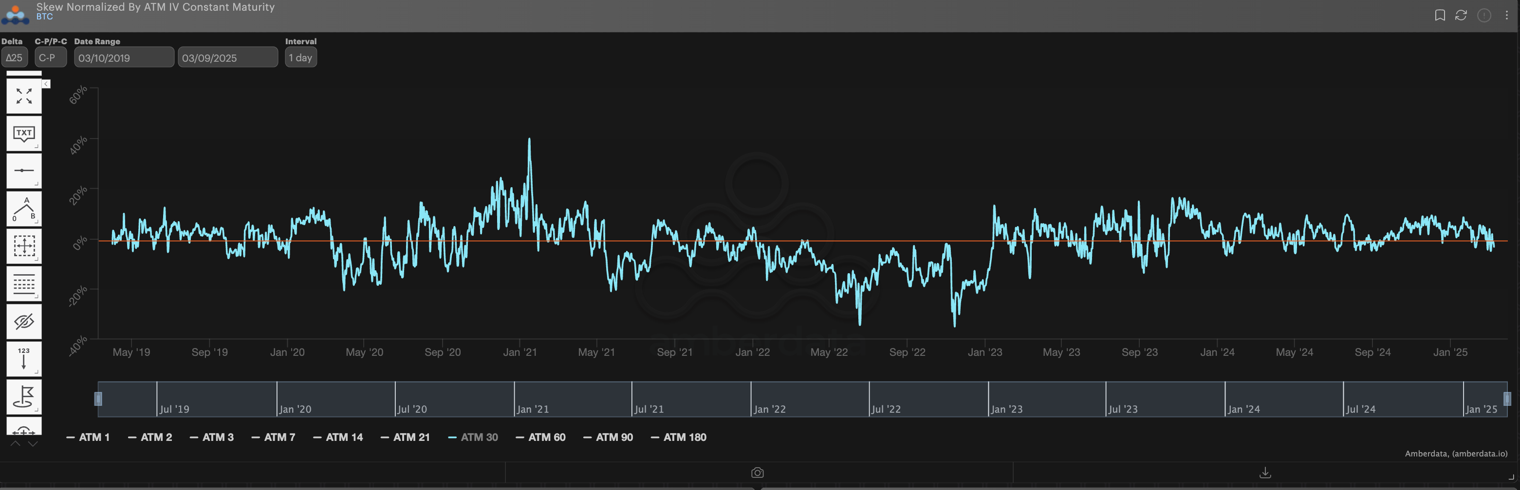Bitcoin ∆25 RR-Skew pricing (above) isn’t very bearish here however, there’s likely a good continuation trade here (+p/-c), given the broader “risk-off” environment in equities due to de-globalization.