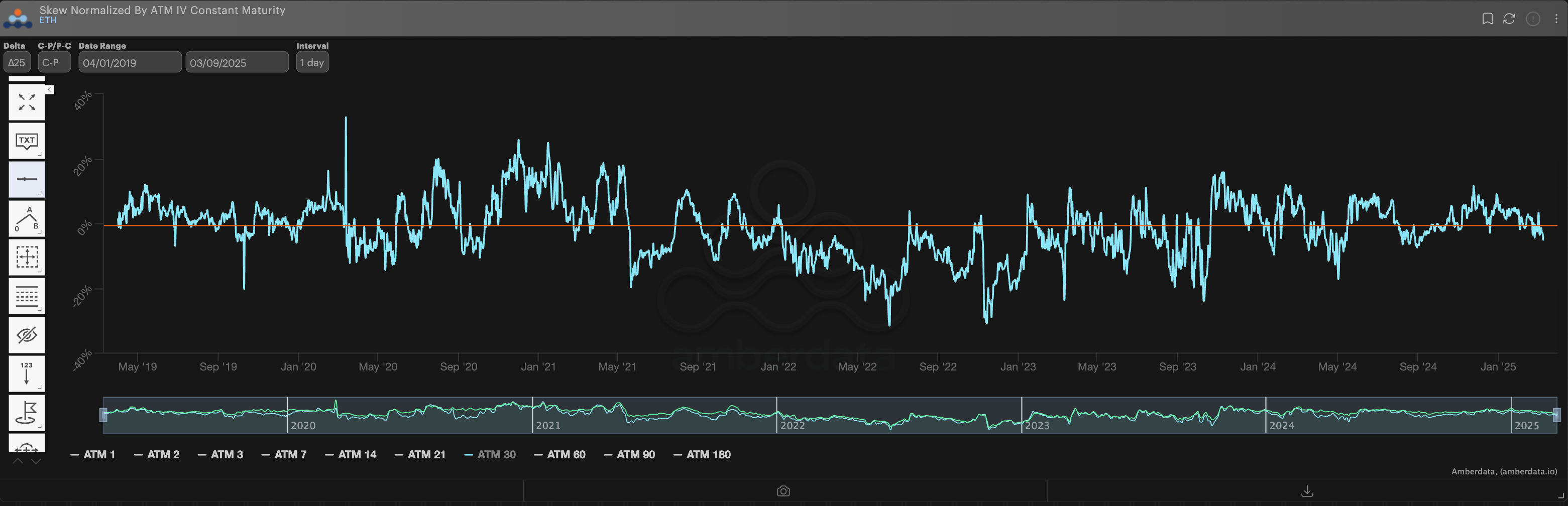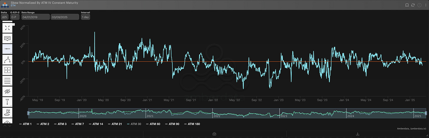 Like BTC, the ETH ∆25 RR-Skew is also historically “neutral” providing good short-delta opportunity.