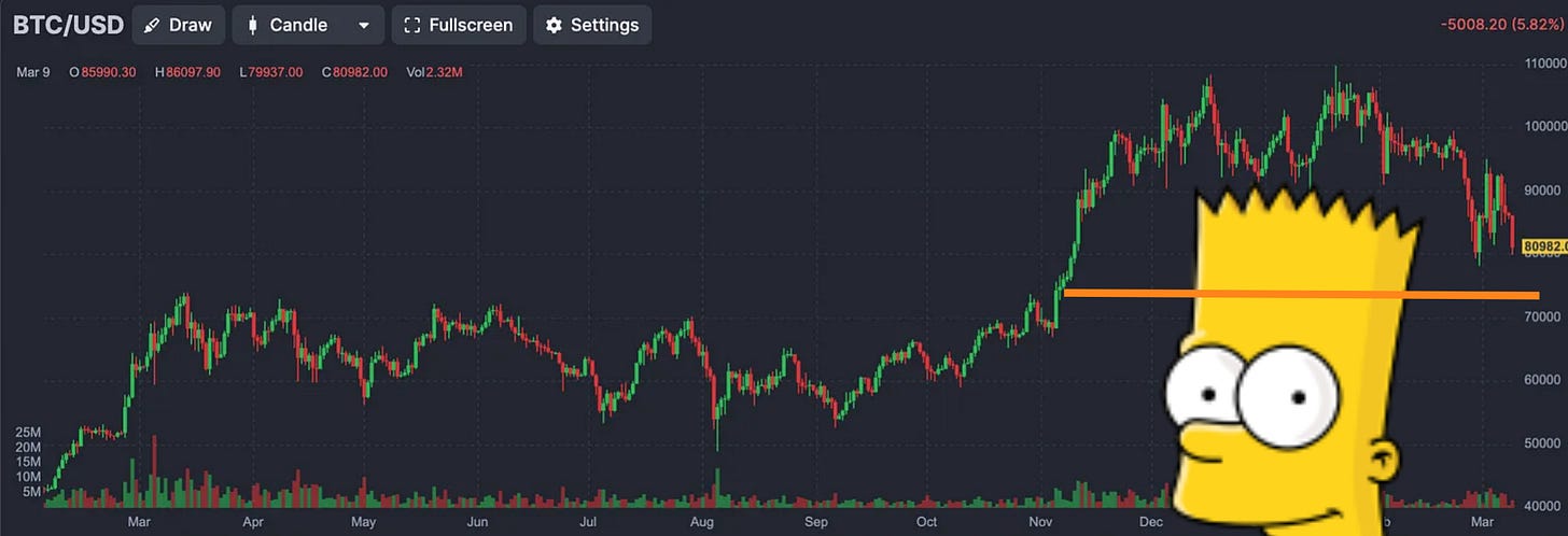 BTC prices look to be delivering a Bart Simpson pattern, which would target spot prices back to $72k, the Nov 5th election level.